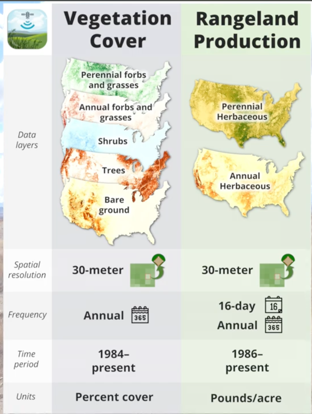 Summary of RAP Vegetation Cover and Rangeland Production Datasets.