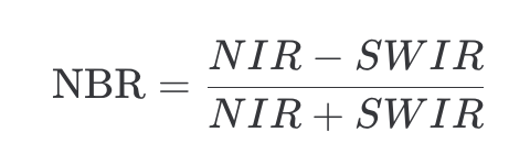 NBR is calculated as the normalized difference ratio between near infrared and shortwave infrared reflectance