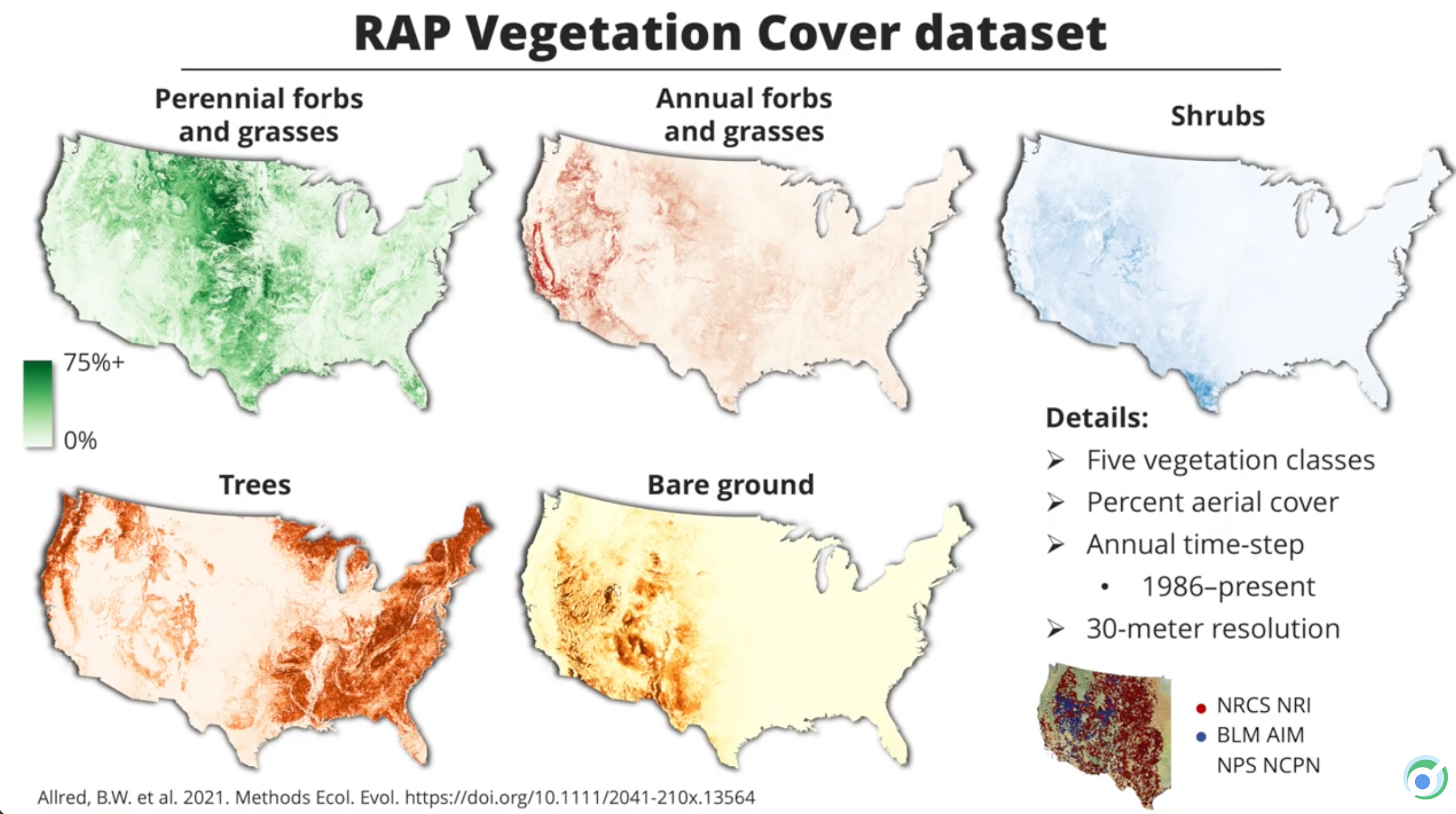 As we will see, when used together these two datasets provide valuable information about ecosystems across the West. For more information on the RAP datasets visit rangelands.app and support.rangelands.app which provides support articles and YouTube videos. We also have information on the RAP at support.climateengine.org